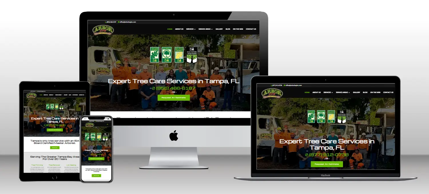 Moderní, poutavý web navržený tak, aby odrážel profesionalitu Arbor Bay a kvalitu jejich práce.